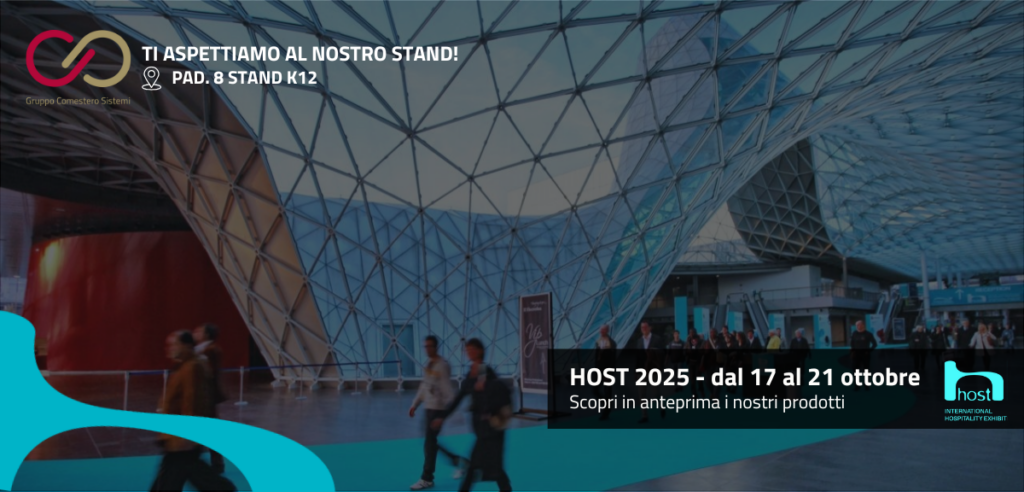HOST 2025 sarà l’occasione per toccare con mano la qualità e l’innovazione dei nostri prodotti. Il nostro team sarà a disposizione per guidarvi alla scoperta delle soluzioni Comestero, rispondere a ogni domanda e mostrarvi come i nostri componenti possano fare davvero la differenza nelle vostre applicazioni professionali. Vi aspettiamo al nostro stand pad. 8 stand K12 dal 17 al 21 ottobre!
